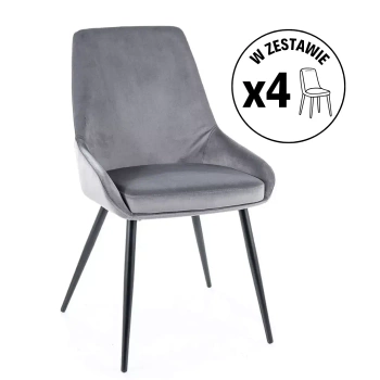 Zestaw 4 krzeseł Kayla Velvet szary