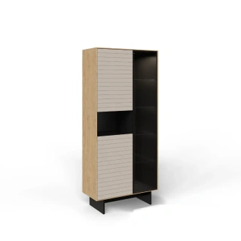Komoda przeszklona 204x96x42 cm 4-drzwiowa Slim Kaszmir dąb