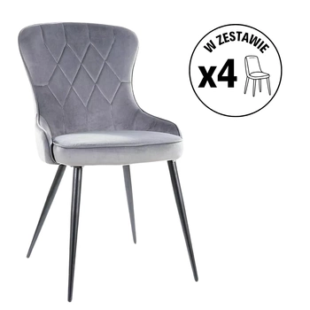 Zestaw 4 krzeseł Mila Velvet szary