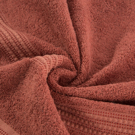 Ręcznik bambusowy z ozdobną bordiurą w pasy szerokość: 70 cm, długość: 140 cm, kolor: pomarańczowy, Gramatura: 500 GSM, Skład: 100% wiskoza z włókna bambusowego: część ozdobna: 100% bawełna
