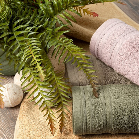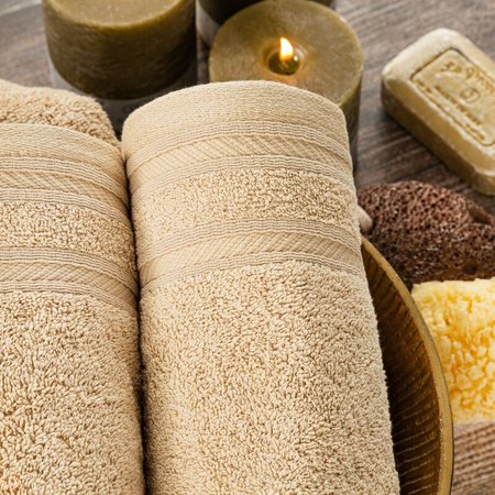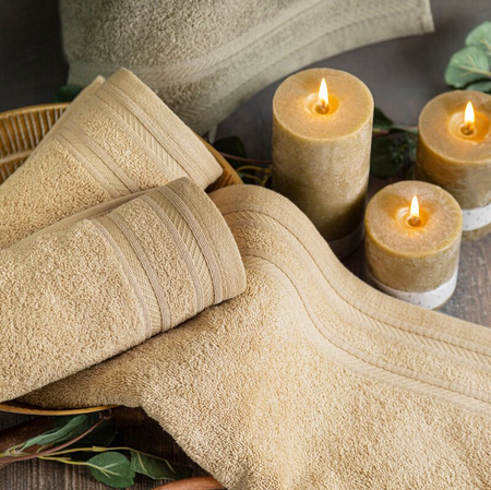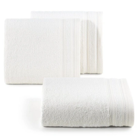 Ręcznik z ozdobną bordiurą w pasy szerokość: 70 cm, długość: 140 cm, kolor: kremowy, Gramatura: 500 GSM, Skład: 100% bawełna