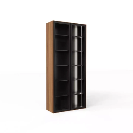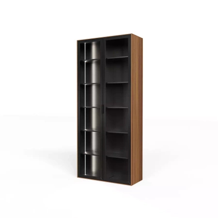 - Biblioteczka Slim 2-drzwiowa 102 cm łączy minimalistyczną elegancję z luksusowym wykończeniem, a smukłą bryłę podkreśla cienka orzechowa opaska. Dwa fronty drzwiowe i wysokiej jakości fornir orzech amerykański nadają meblowi prestiżowy charakter.