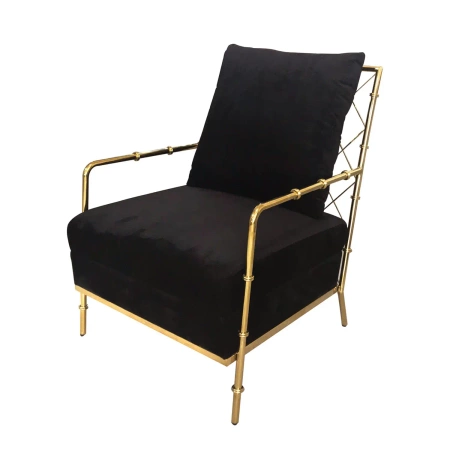 Fotel Florene 66/71/85cm tapicerowany czarnym welurem w złotej chromowanej ramie