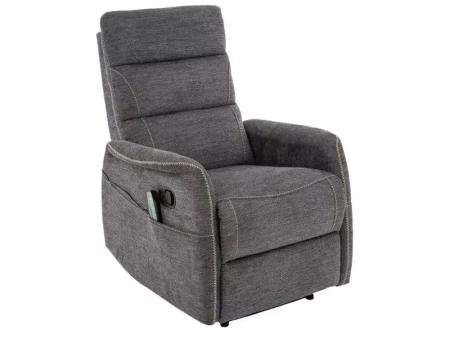 Fotel rozkładany z funkcją masażu i podgrzewania, tkanina Brego 18, stelaż: metal, kolor: ciemny szary / czarny. Praktyczna kieszeń na prawym boku, przewodowy pilot sterujący funkcą masażu.
