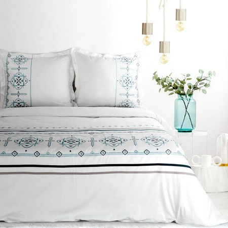KOMPLET POŚCIELI SATYNOWEJ HAFT 160 X 200 CM BIAŁY