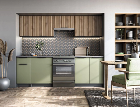 KSENIA 240 kuchnia zestaw korpus: antracyt, front: orzech / pistacja (10p=1kpl)