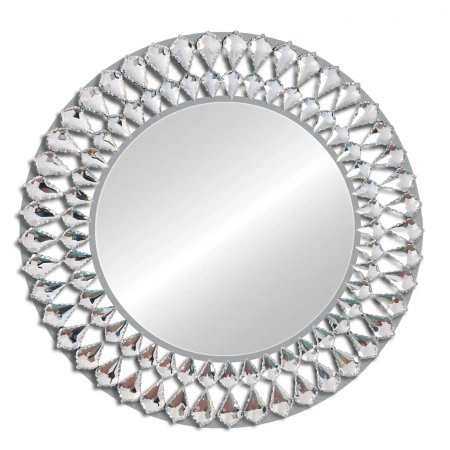Lustro okrągłe Marsylia 80cm to okrągłe, ażurowe lustro w stylu glamour o niezwykle dekoracyjnej ramie. Zwierciadło lustra Marsylia otaczają regularnie umieszczone mieniące się szkiełka ale i oryginalnie oszlifowane i przypominające kryształki. Nietuzinkowa rama składa się z ułożonych w dwóch rzędach elementów szklanych, przypominających kształtem łezki. Olśniewające, z nutą blichtru da efekt dostojnej elegancji. Lustro okrągłe Marsylia będzie wyrazistym dodatkiem w każdym stylowym wnętrzu.