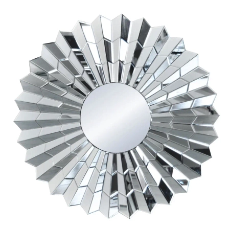 Lustro okrągłe Violett Srebrne 90cm - Wachlarzowy i pierścieniowy układ poszczególnych elementów sprawia, że lustro ma trójwymiarową formę i jest alternatywą do luster w prostych ramach. Pięknie odbija światło, a srebrne wykończenie to wybór na miarę króla.