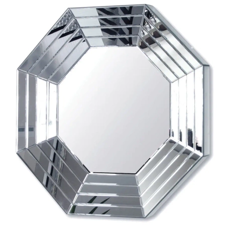 Lustro ośmiokątne Fantuzzi 100/100cm to ośmiokątne zwierciadło otoczone ramą, składającą się z elementów lustrzanych ułożonych schodkowo i zbiegających się na jednym poziomie w środkowej, szklanej tafli. Piękna rama stanowi główny aspekt dodający mu wysokich walorów estetycznych i dekoracyjnych. Nieszablonowe obramowanie i precyzyjne wykonanie sprawiają, że lustro będzie charakterystycznym elementem każdej aranżacji wnętrza. Solidne plecy lustra Fantuzzi wyposażone w zaczepy umożliwiające łatwy montaż.