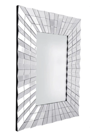 Lustro Galante 80/120cm to lustro prostokątne w dekoracyjnej ramie. Lustro o nowoczesnym wyglądzie i solidnym wykonaniu. Model Galante posiada misternie wykonaną ramę, składającą się z małych lusterek umocowanych pod różnymi kątami, dzięki czemu otrzymujemy niesamowity efekt 3D. Lustro jest więc przestrzennym dziełem sztuki. Efektowne lustro nie tylko powiększy pomieszczenie, ale także stworzy w nim swoistą grę świateł. Dekoracyjna rama sprawi, że będzie świetnym dodatkiem do wnętrz urządzonych w stylu glamour, nowojorskim i nowoczesnym.
