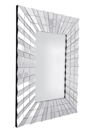 Lustro prostokątne Galante 80/140cm - Duże lustro prostokątne w dekoracyjnej ramie. Lustro o nowoczesnym wyglądzie i solidnym wykonaniu. Model Galante posiada misternie wykonaną ramę, składającą się z małych lusterek umocowanych pod różnymi kątami, dzięki czemu otrzymujemy niesamowity efekt 3D. Lustro jest więc przestrzennym dziełem sztuki.