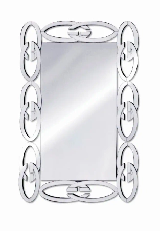Lustro Renee 80/120cm - Stylowe, eleganckie lustro Renee o prostokątnym kształcie. Rama lustra prostokątnego wykonana z ażurowych elementów lustrzanych w kształcie kółek. Oryginalne elementy obramowania lustra nowoczesnego Renee łączą się ze sobą w imponujący splot. Lustro nowoczesne Renee stworzy harmonijną aranżację z obrazami, czy plakatami, powieszone zarówno w sypialni, jak i w salonie, czy w holu. Plecy lustra prostokątnego wykonane z solidnej płyty MDF w kolorze czarnym.
