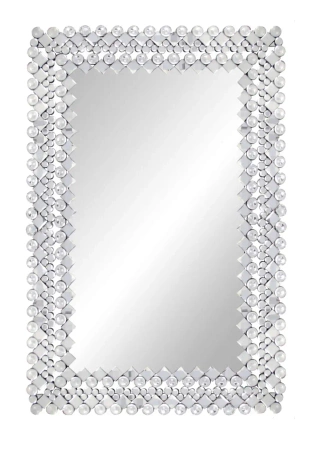 Lustro Voltera 80/120cm to prostokątne, ażurowe lustro w stylu glamour o niezwykle dekoracyjnej ramie. Zwierciadło lustra Voltera otaczają regularnie umieszczone mieniące się szkiełka, ponieważ oryginalnie oszlifowane i przypominają kółeczka, a także kwadraty. Nietuzinkowa rama składa się z ułożonych w kilku rzędach elementów szklanych.