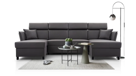 Wyobraź sobie mebel, który staje się sercem Twojego domu. To nie tylko miejsce do siedzenia, ale prawdziwe centrum rodzinnego życia, gdzie gromadzicie wspólne wspomnienia. Taki właśnie jest narożnik MORIS U. Zaprojektowaliśmy go z myślą o Tobie i Twoich bliskich, aby zapewnić przestrzeń do wspólnego relaksu, zabawy i długich rozmów. Jego imponująca, nowoczesna bryła doskonale wypełni przestronne wnętrze, stając się jego główną ozdobą i ulubionym miejscem każdego domownika. Jako duży narożnik w kształcie U z funkcją spania, MORIS U jest odpowiedzią na wszystkie potrzeby Twojego salonu. Jego wszechstronność sprawia, że jest to mebel do zadań specjalnych. W ciągu dnia zapewnia niezwykle dużo miejsca do siedzenia dla całej rodziny i przyjaciół. Gdy zajdzie potrzeba, błyskawicznie zamienisz go w wygodne miejsce do spania.
