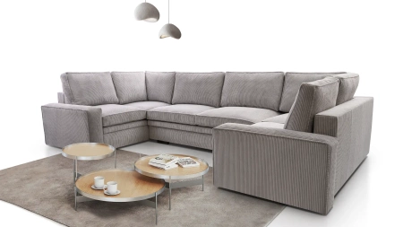 Narożnik Toledo U to propozycja dla osób ceniących wygodę, przestrzeń i nowoczesny styl. Jego charakterystyczny kształt w układzie litery „U” zapewnia maksymalną ilość miejsca do relaksu – idealny dla całej rodziny lub podczas spotkań z gośćmi. Miękkie, profilowane oparcia i szerokie siedziska gwarantują wyjątkowy komfort użytkowania, a nowoczesna linia i estetyczne przeszycia nadają mu elegancki wygląd. Toledo U to nie tylko funkcjonalny mebel wypoczynkowy, ale też efektowny element wystroju salonu, który przyciąga wzrok i dodaje wnętrzu prestiżu.