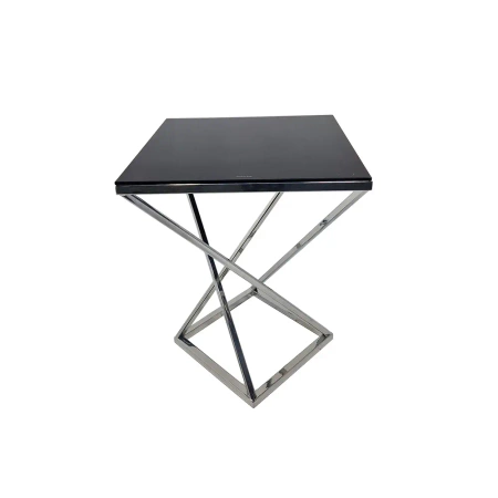 Stolik pomocniczy glamour Bari 48/48/57,5cm boczny stolik nocny czarne szkło srebrny