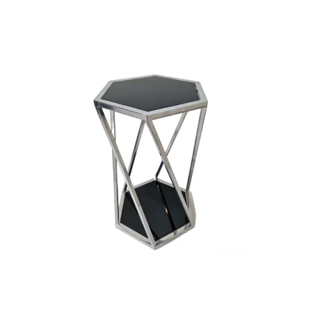 Stolik pomocniczy glamour Palermo 36/41/61cm boczny stolik nocny czarne szkło srebrny