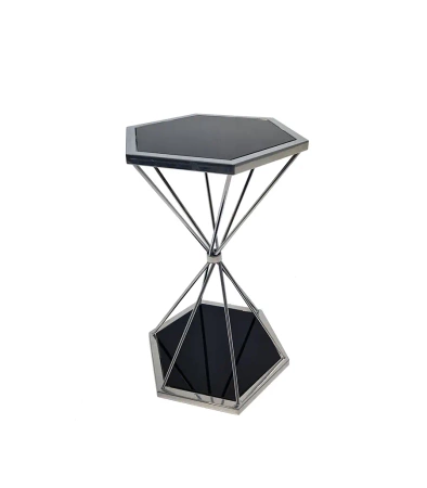 Stolik pomocniczy glamour Treviso 64/40/36 cm boczny stolik nocny czarne szkło srebrny
