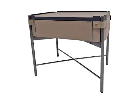 Szafka nocna Dario to mebel o niepowtarzanym designie. Wykonana ze skóry naturalnej i drewna. Osadzona na stalowych nóżkach w ciemnym grafitowym kolorze.