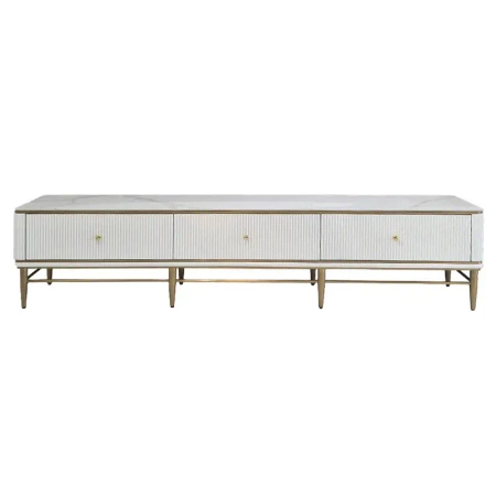 Szafka RTV Violino glamour biała o złotym wykończeniu i blatem ze spieku