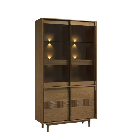 Witryna z litego drewna z wbudowanym oświetleniem