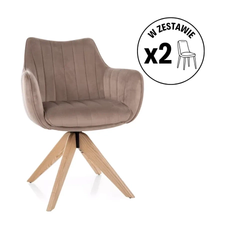 Zestaw 2 krzeseł Azalia D Velvet ciemny beżowy jesion