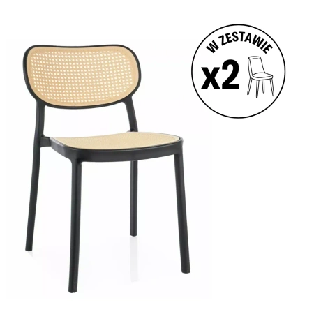 Krzesło, tworzywo PP, kolor: beżowy – efekt ratanu / czarny. Możliwość sztaplowania krzeseł.