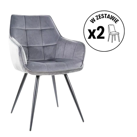 Krzesło, tkanina aksamit, Bluvel 14 - szary, stelaż: metal, kolor: czarny mat.