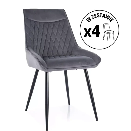 Zestaw 4 krzeseł Agat Velvet ciemny szary