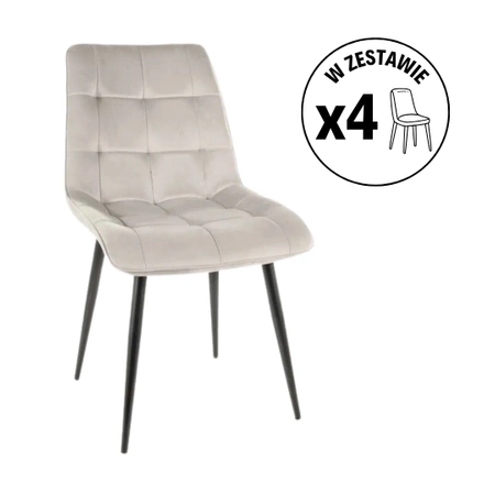 Zestaw 4 krzeseł Chic Velvet jasny szary