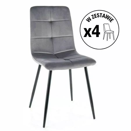 Zestaw 4 krzeseł Ivo Velvet szary