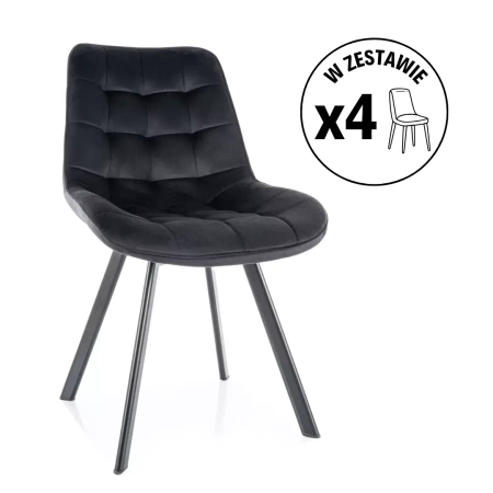 Krzesło, tapicerka: tkanina aksamit: Bluvel 19, stelaż: metal, kolor: czarny / czarny mat.