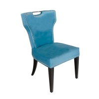 Krzesło Vittdria 58/65/95cm tapicerowane niebieskim welurem ze srebrnym uchwytem i srebrnymi nitami